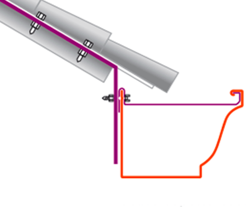 Además todos los materiales auxiliares de montaje son inoxidables y van lacados en frío en el mismo color del canalón.